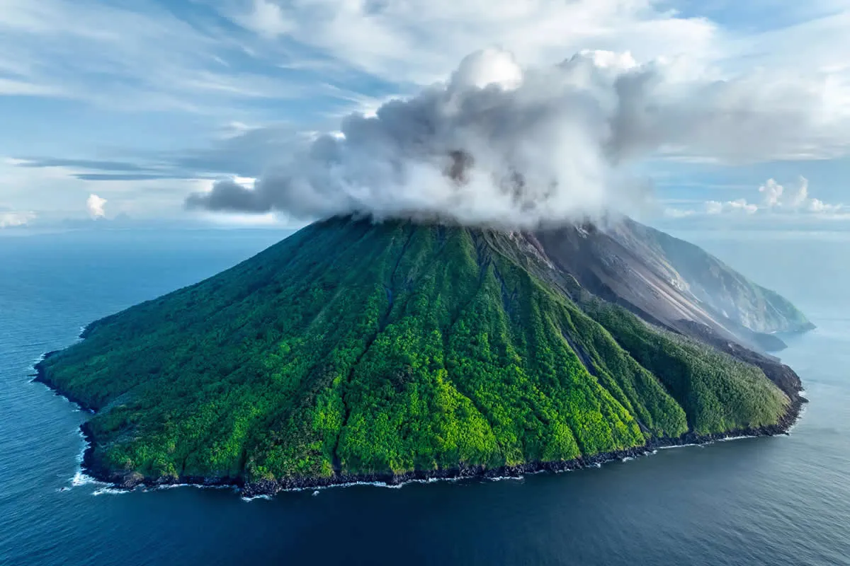 Aerial view of volcanic island