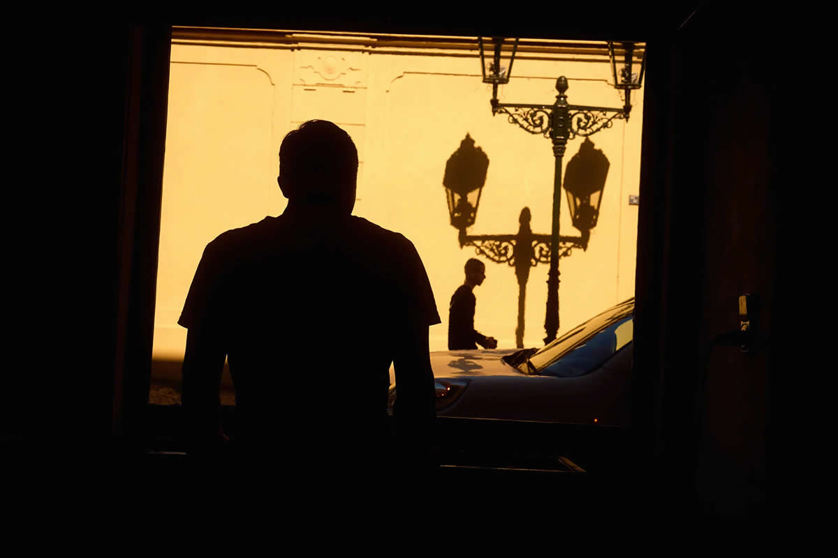 Schönberg has this crazy talent for finding beauty where most people just walk past. Think bright yellow walls glowing in the sun, street lamps casting long shadows, silhouettes drifting through quiet alleys, and windows that look like little portals into someone else’s life. His framing is so clean it almost feels intentional on Prague’s part, like the city just waits patiently for him to show up and press the shutter.