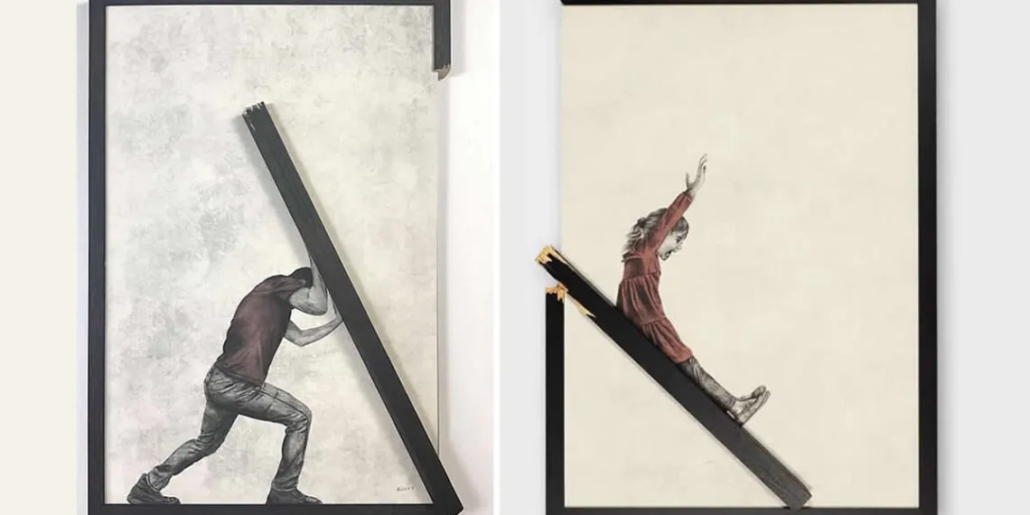 - They are artworks where the frame becomes part of the composition—often broken, burned, or distorted to enhance emotional impact.