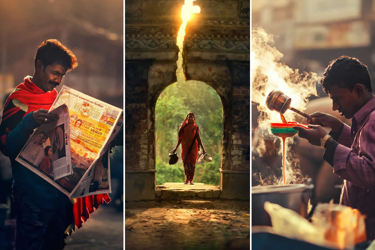 In Ashraful Arefin’s world, light doesn’t just illuminate—it narrates. From the crack of dawn to the last glow of sunset, he lets natural light guide the emotional tone of every shot. Soft, misty sunrise light creates a calm, dreamy vibe, while sharper afternoon rays carve strong contrasts that feel bold and dramatic. Ashraful treats light like a language, translating everyday scenes into visual poetry.