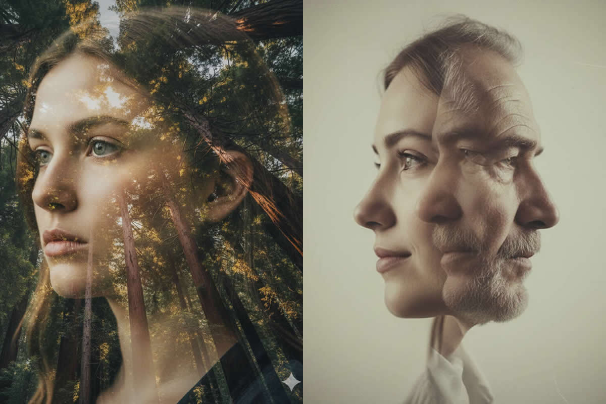 Nature is the classic partner for double exposure. It introduces texture, life, and raw emotion.