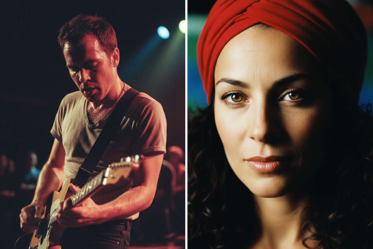 Kodachrome portrait, subtle magenta color shift present in the shadows (common with older Kodachrome), subject [a musician performing] on a dimly lit stage, high saturation on stage lights, intentional vintage color imperfections.