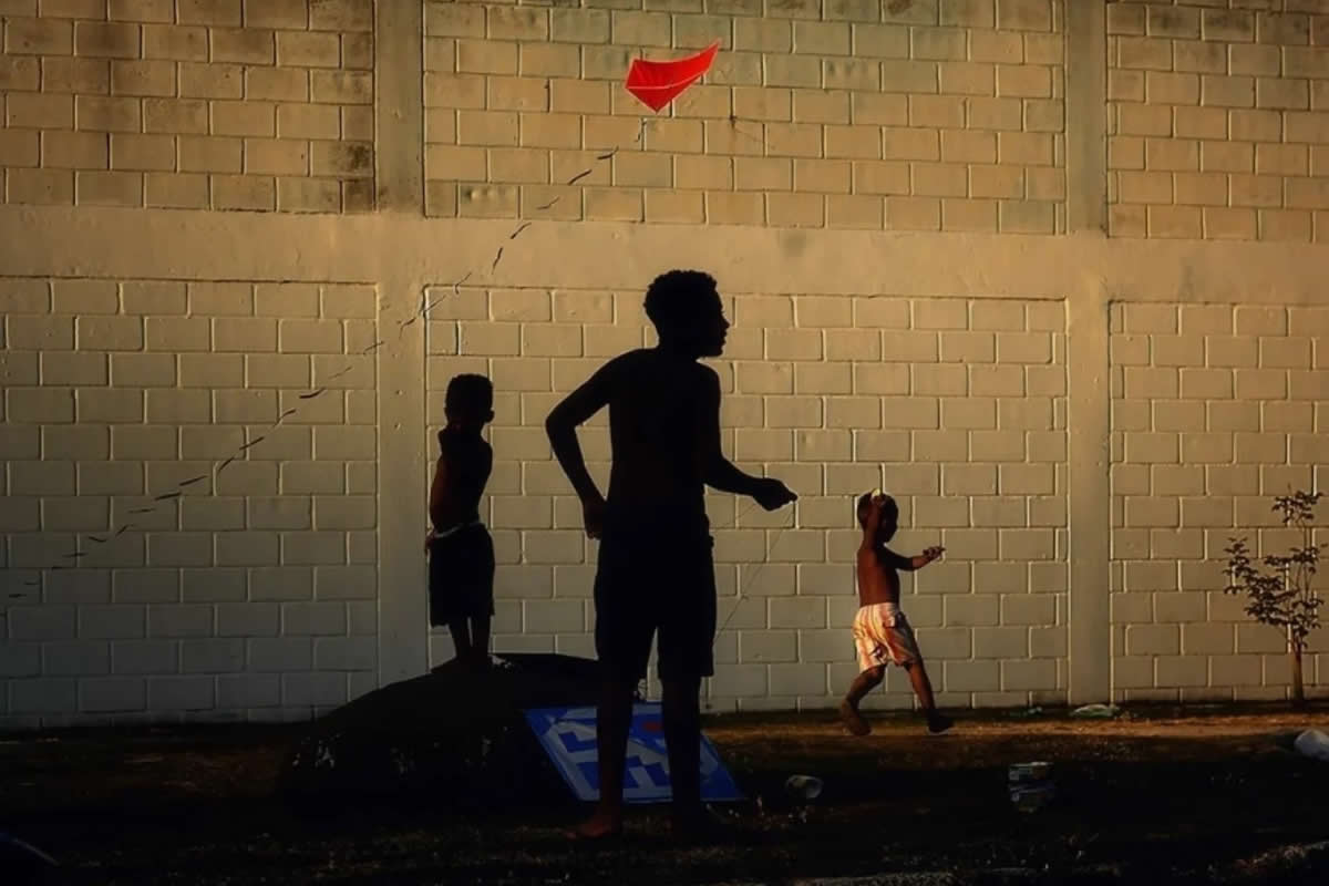 "In the twilight of a radiant day, three children gather at the Kite Festival in Paraíba do Sul, in the heart of Rio de Janeiro. The image captures their silhouettes playing and having fun."