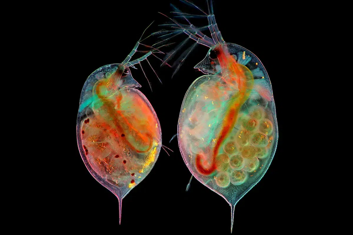 #16. 16th Place: "Two water fleas (Daphnia sp.) with embryos (left) and eggs (right)" by Marek Miś