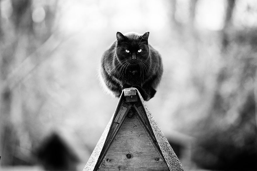In Sabrina words about monorail Cats, “I love cats in every situation and I find them so funny when they apply their cat logic to everyday life. I’ve met many monorail cats while photographing colony cats: they love sleeping perched on the most uncomfortable places, mostly doghouses that are used as shelters for outdoor cats. My cats Sissi and Ricky, on the other hand, are true experts of walking on the tiny rail of the fence in our yard. They are truly amazing, only their little paws can walk steadily up there even when the rail is wet after the rain.”