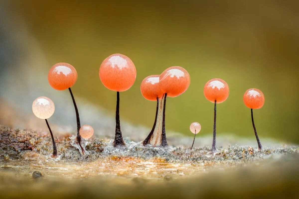 U.K based Macro Photographer Barry Webb highlight the beautiful diversity of Slime Molds. Barry Webb favors the shimmering, gelatinous, and iridescent growths that sprout from decaying wood and plant material. His macro shots magnify the often imperceptible details of small slime molds, capturing the specimen’s unique characteristics with striking detail.