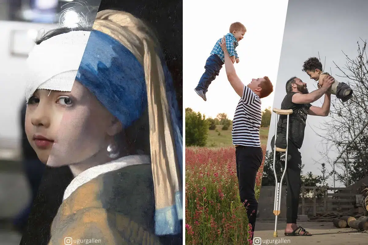 Istanbul-based artist Ugur Gallenkus creates art that hits you right in the heart. His work is all about contrast, juxtaposing two very different worlds. In his digital collages, you’ll see snapshots of comfort and luxury alongside scenes of war, hunger, and hardship. It’s a jarring combination, and that’s exactly what he wants: to make you stop and really feel the difference.