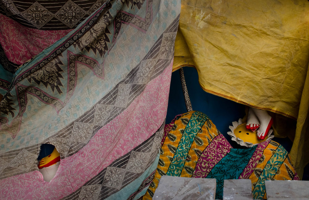 As I walked down the alleys that lead to the Potter’s colony, the famous Kumortuli of Kolkata, I noticed the usual throbbing business at this festive time of the year: the artisans busy trying to meet the deadlines, the customers finalizing the deals, the idols being taken away to different pandals. The colour, the hullabaloo, the cacophony all creating an amazing experience. But all is not well in the seemingly heavenly atmosphere.
