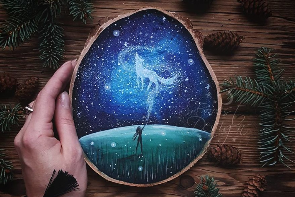 Artist Anna Kucharska Paints Magical Starry Scenes On Scavenged Wood
