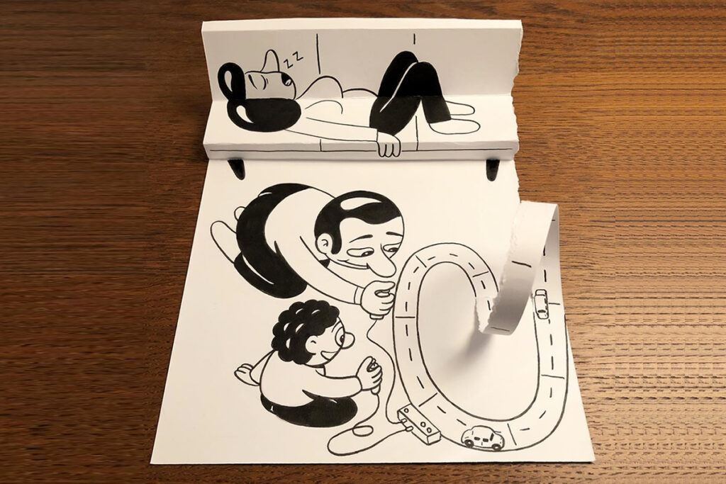 Danish Artist Creatively Folds Paper To Bring His Drawings To Life